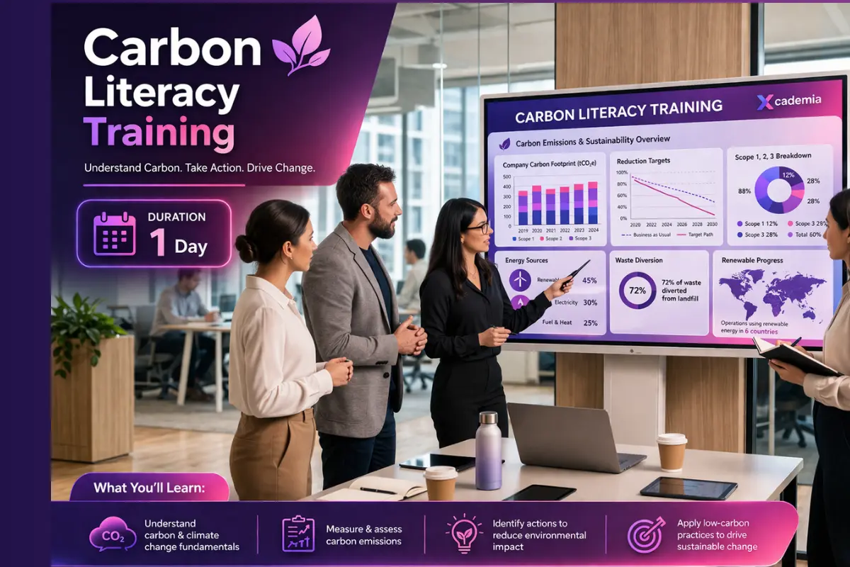 Carbon Literacy Training provides a practical introduction to climate science, carbon emissions, and the role individuals and organisations play in addressing climate change. Designed as a mentor-led experience, the course focuses on real-world scenarios to help learners understand how emissions are generated and measured across different activities and sectors.