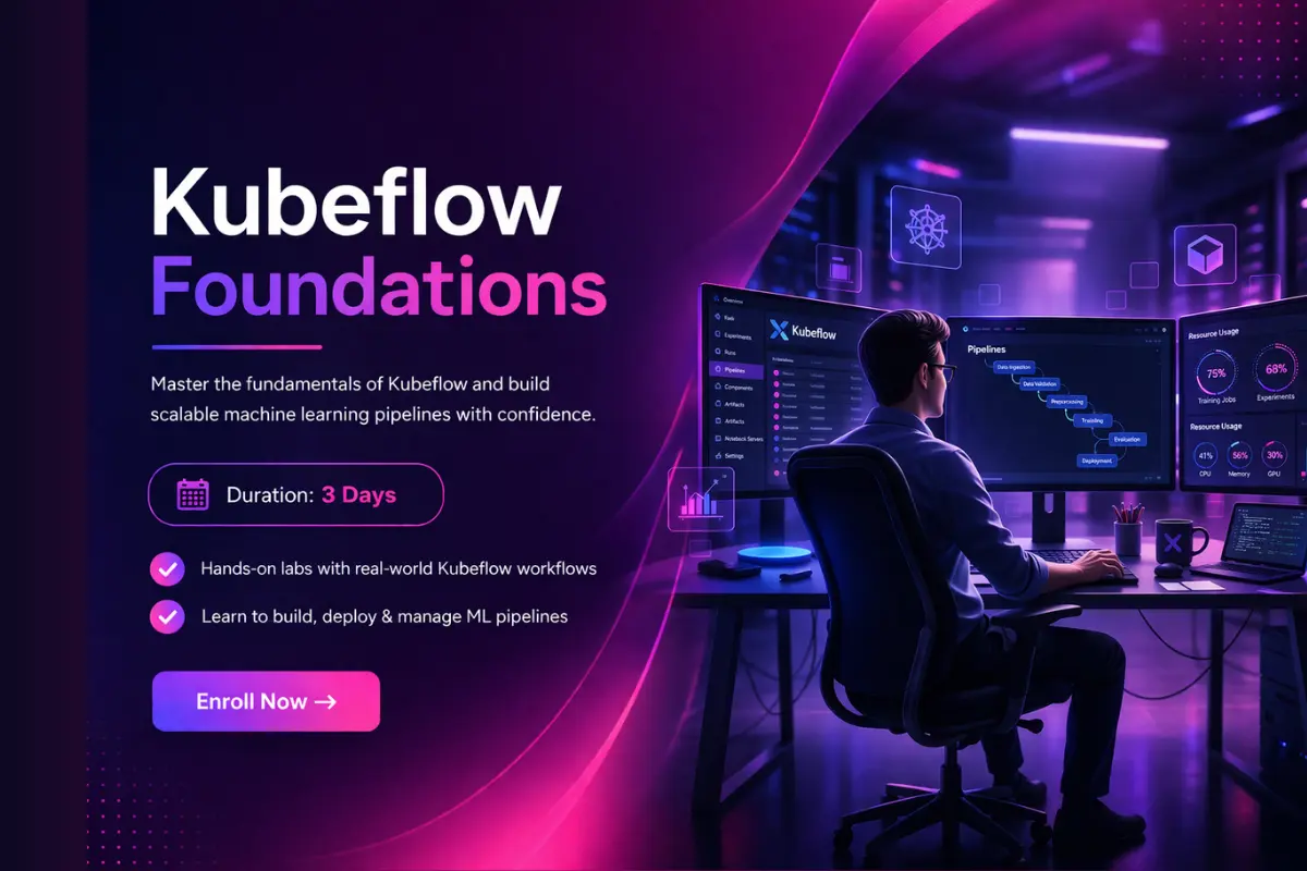 This mentor-led programme introduces the core components of Kubeflow, including pipelines, experiment tracking, and model serving. Participants learn how to design ML workflows, automate training pipelines, and manage model deployments using cloud-native infrastructure.